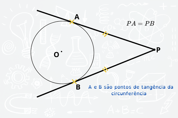 👉 “Os segmentos tangentes traçados de um mesmo ponto externo a uma circunferência possuem comprimentos iguais.”