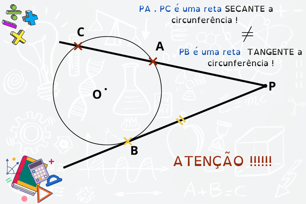 Em muitas questões, o ponto externo P está ligado ao centro O da circunferência, formando triângulos retângulos (pois o raio é perpendicular à tangente).